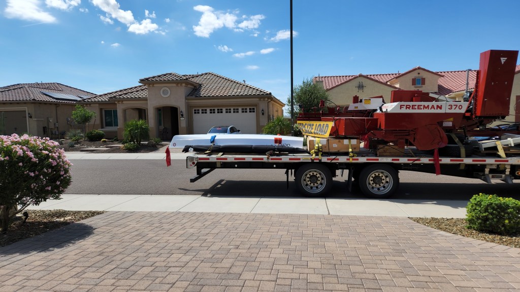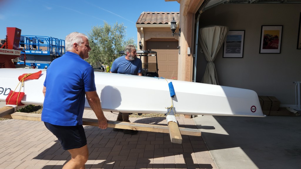 Greg and the driver unloaded the boat and before the truck was out of sight, Greg was untying the sailor’s knots used to secure the boat to a shipping frame.