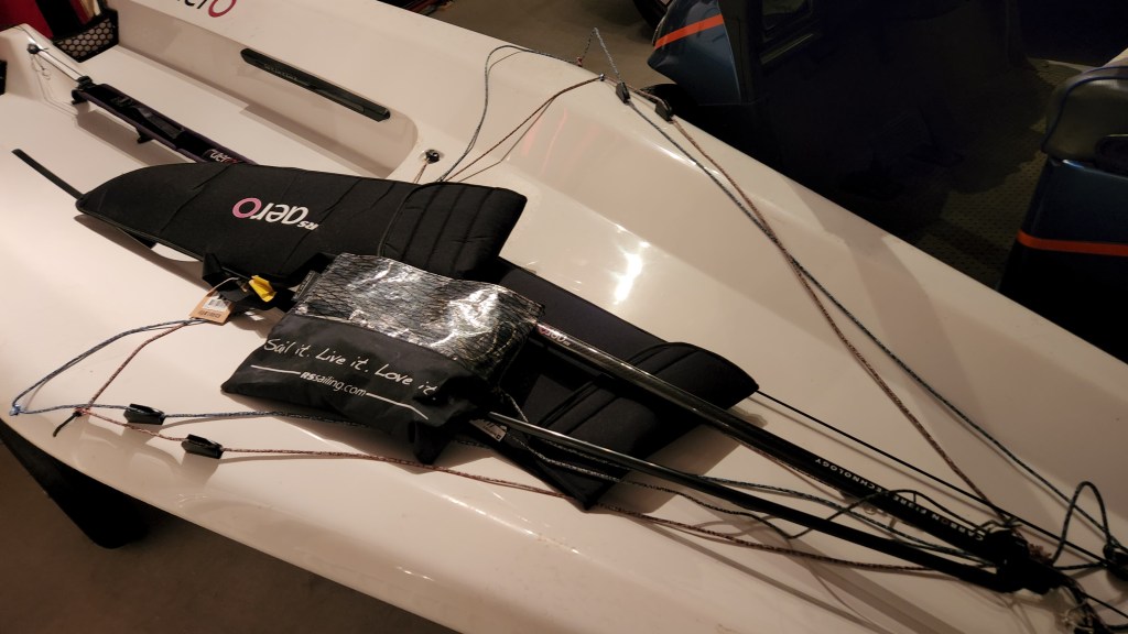 It’s in remarkable condition. He got a brand new sail, new lower mast and everything came with nice, professional-grade carrying bags. We discussed name options and settled on “Andiamo!”