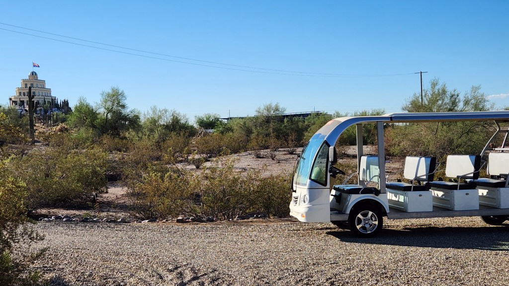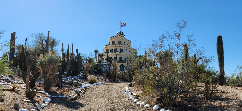 The tour includes a narrated ride to the castle through the grounds. You learn about the original owner and his plans to build a boutique hotel in the desert … and how they were foiled by the Great Depression.