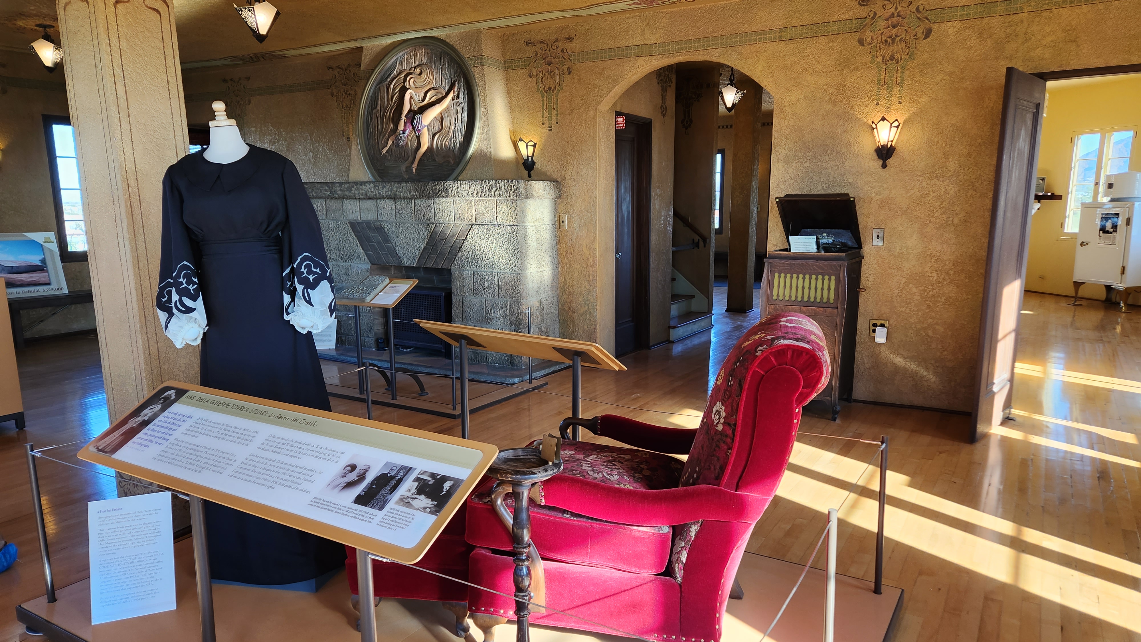 When you arrive at the structure, a welcome bell is rung by a tour volunteer, before the small group heads inside to don shoe coverings ahead of a walk around the main floor. Artifacts and period pieces tell the story of the three families who owned Tovrea Castle before it was acquired by the city of Phoenix and declared an historic site.