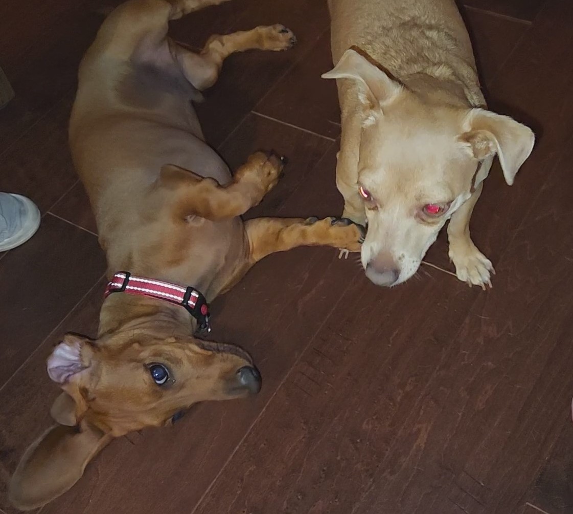 We have neighbors with a Chi-Weenie, a Chihuahua/Dachshund mix. She is about three years old and grew up with a much older housemate. Since we met her, Lucy has been a bit of an old soul.