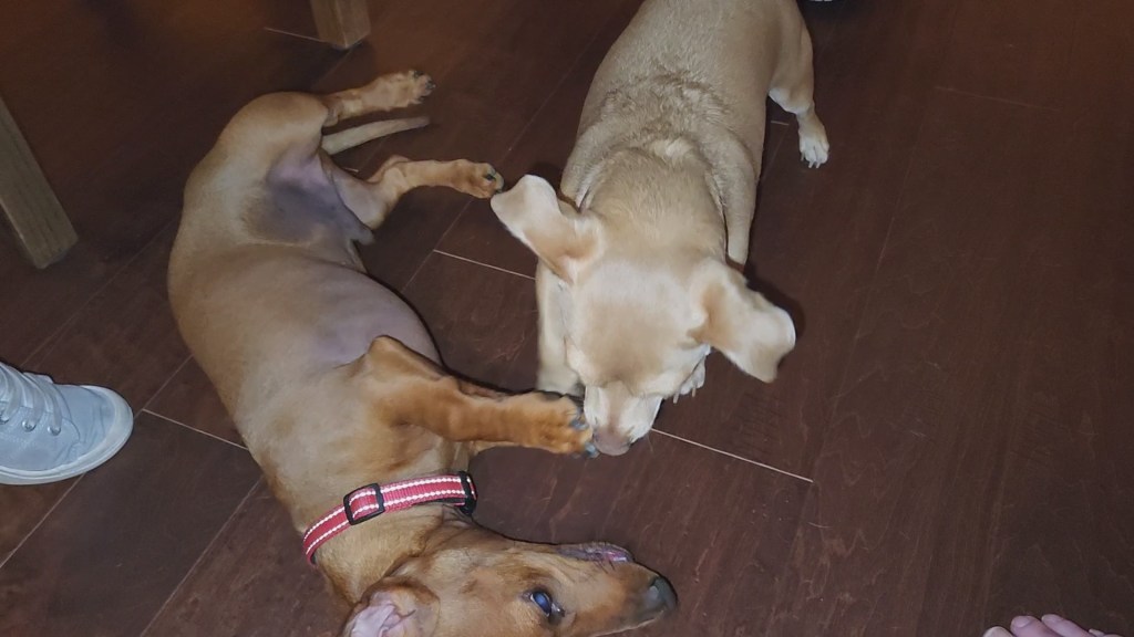 Last night, they finally clicked. The two of them wrestled and frolicked under the table while we ate dinner and chatted the evening away.