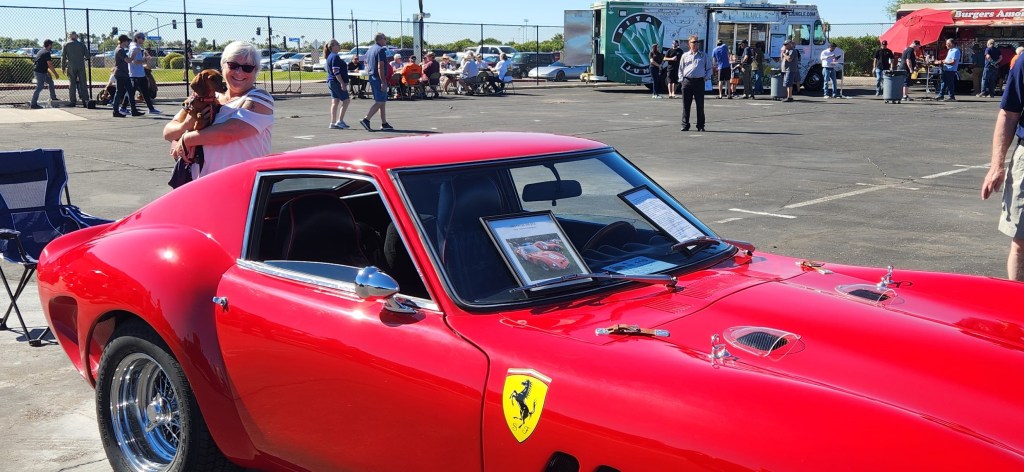 Greg was immediately drawn to a stunning bright red 1962 Ferrari GTO. Enzo begrudgingly stayed still for the requisite photo opp in honor of his namesake.