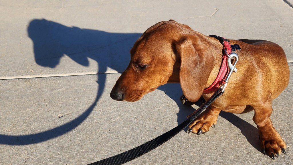 Yesterday the timing was right. We grabbed Enzo’s leash and headed out for a quick stroll through the neighborhood. The shadows were just beginning to lengthen.
