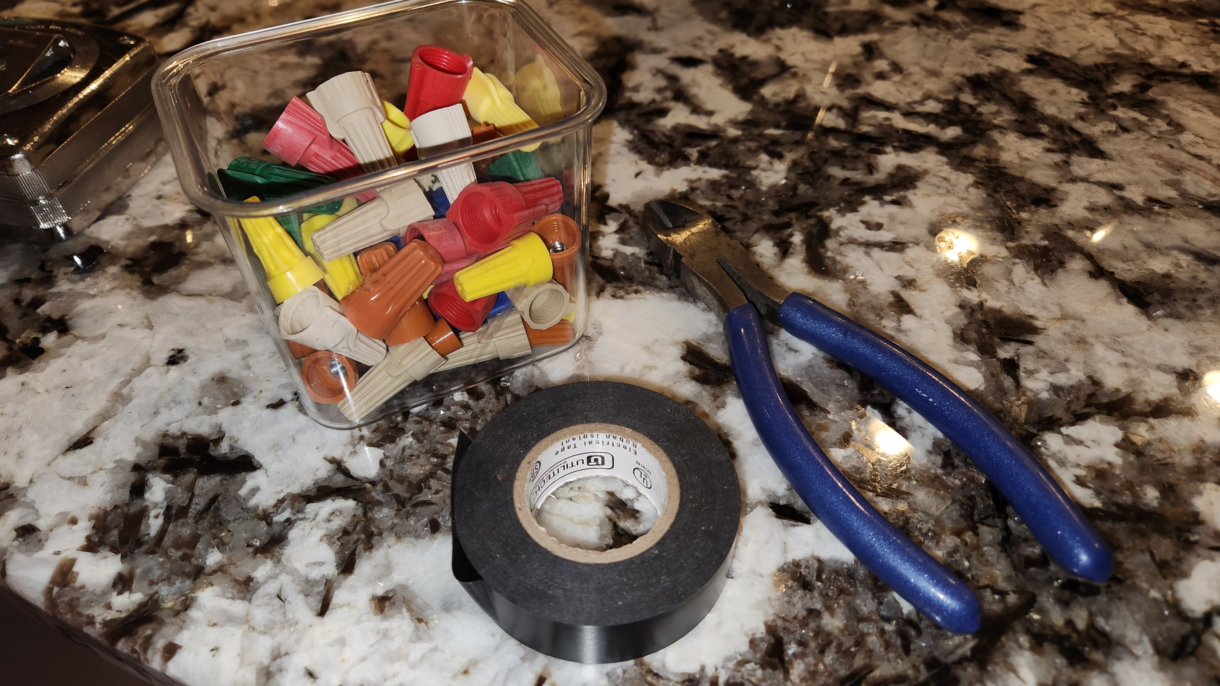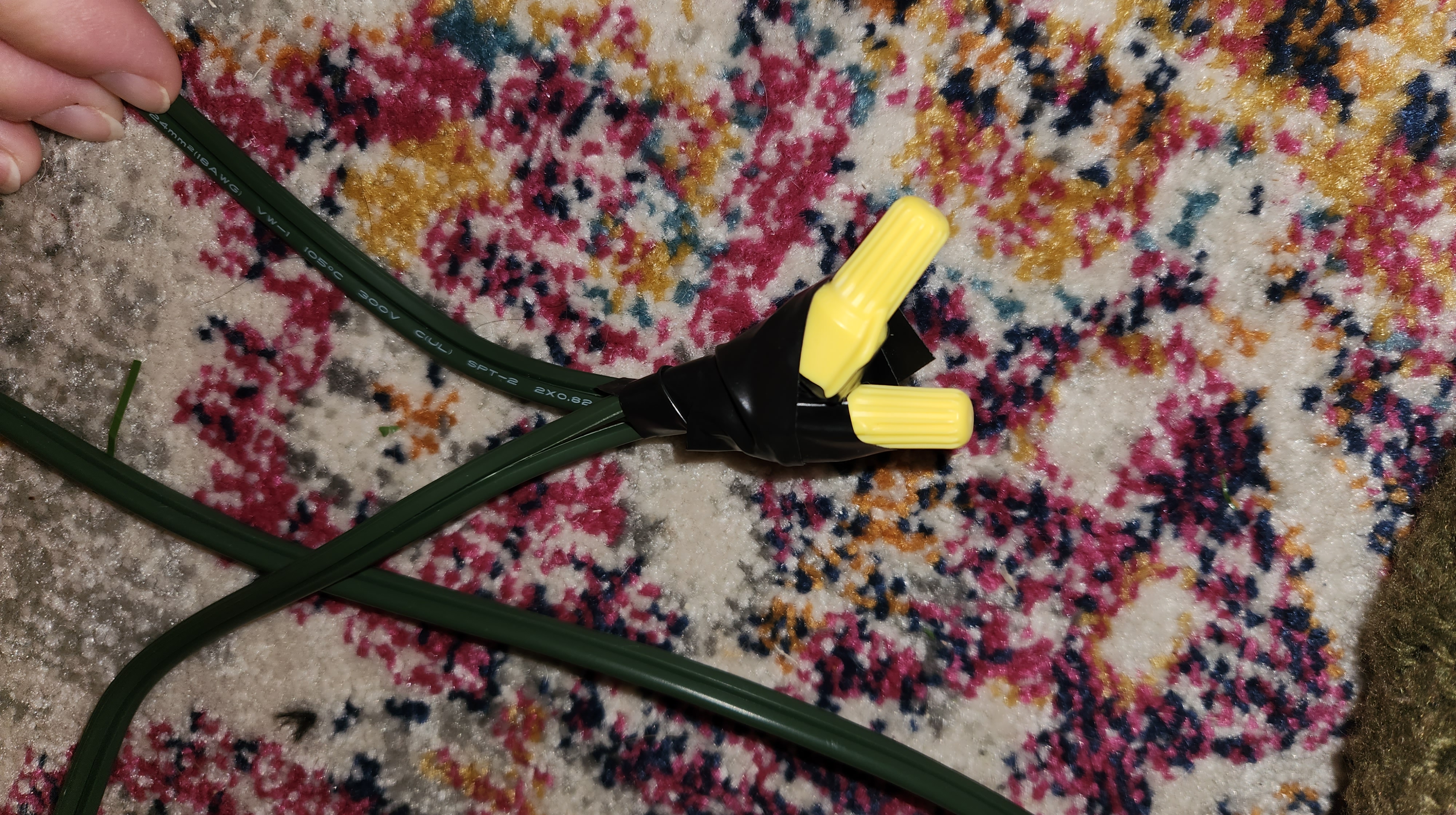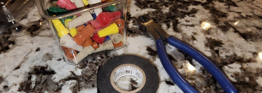 Fortunately, it was just the chord … and it wasn’t plugged in. I peeked up from the floor and asked Greg if we had electrical tape. He said yes and suspiciously asked why. When I told him, he just groaned and rolled his eyes … then went to get the tape from the garage.