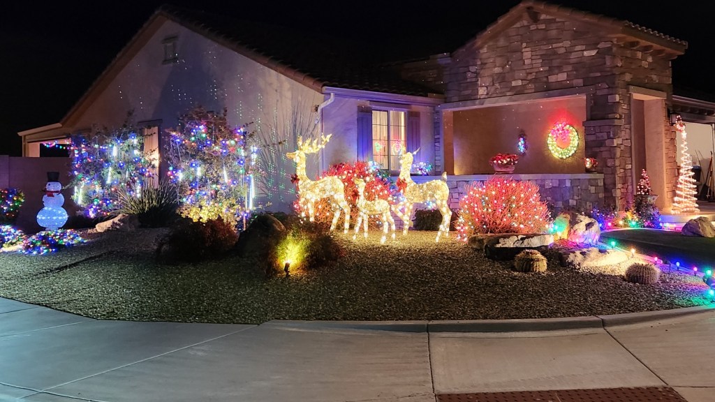 It starts with a single house. One ambitious, industrious family puts up a lighted reindeer or Santa or something and runs lights along the roofline. That night, the neighborhood brightens a bit and becomes more colorful. Then, within a few days … it’s ON!