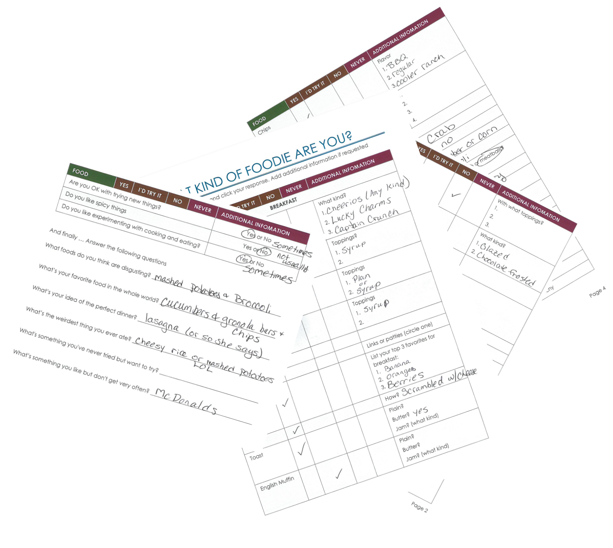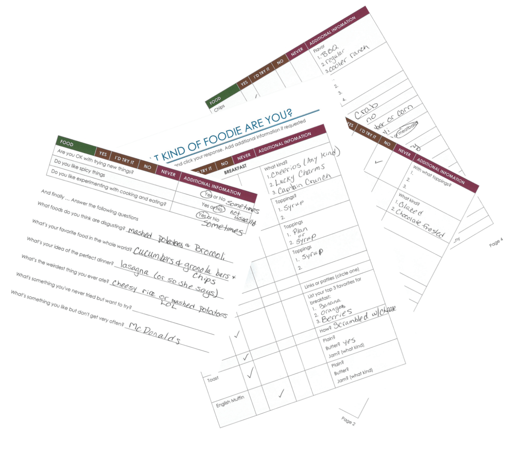 It all starts with a multi-page questionnaire. I email the document to my daughter who prints it up and gives a copy to each one of them – she fills one out, too. Kids can be finicky, so I decided it’s important to know what they like and what they simply refuse to eat. And, of course, as a grandma it’s important to know what they think of as a treat … because I want to spoil them a bit.