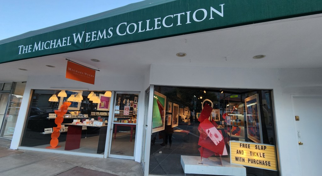 We next visited the Michael Weems Collection. As an artist, Michael’s work has been described as “original art with an attitude.” The gallery sells an eclectic mix of arts and items inspired by Michael’s penchant for the inappropriate … just what we like. We picked up a few more “must have” items here.