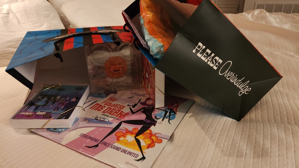 Finally, we ended up at the Destination PSP store, where we’ve bought some wonderful mid-century modern inspired plastic-ware for the pool. This time, we added some additional poolside-friendly wine glasses and ice bucket, and some matching bathing suits (for those times when suits are required). Our haul filled our arms with bags, making us even more grateful we have an SUV big enough to take it all home!