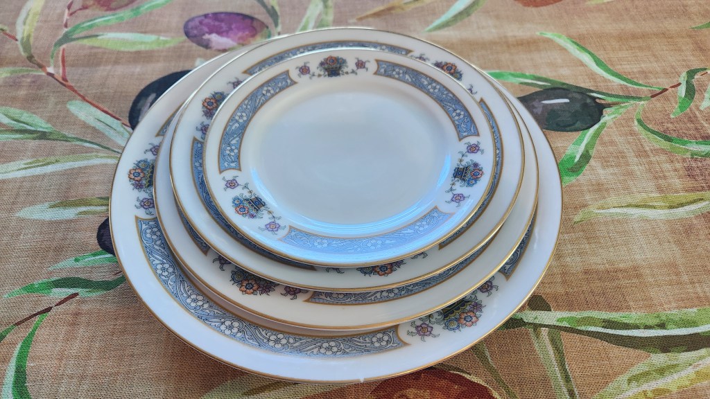 I didn’t even look at the contents until we got home. Great Aunt Leah and her husband had been well off. When they married, they registered for gifts (very rare in those days) and the box contained almost an entire service for 12.