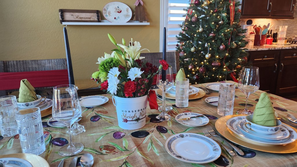 I was overwhelmed at first, then I embraced it. I love getting out all the pieces and setting a super fancy table for a holiday meal. Crystal water glasses, wine glasses (both red and white), champagne flutes for before dinner sips … the list goes on and always adds flair to my attitude as well as my table.