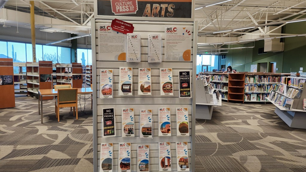 But, the view isn’t the reason to go. The library is home to thousands of books (of course), a huge bank of computers and plenty of extras … like the rack of loaner tickets to local museums and attractions.