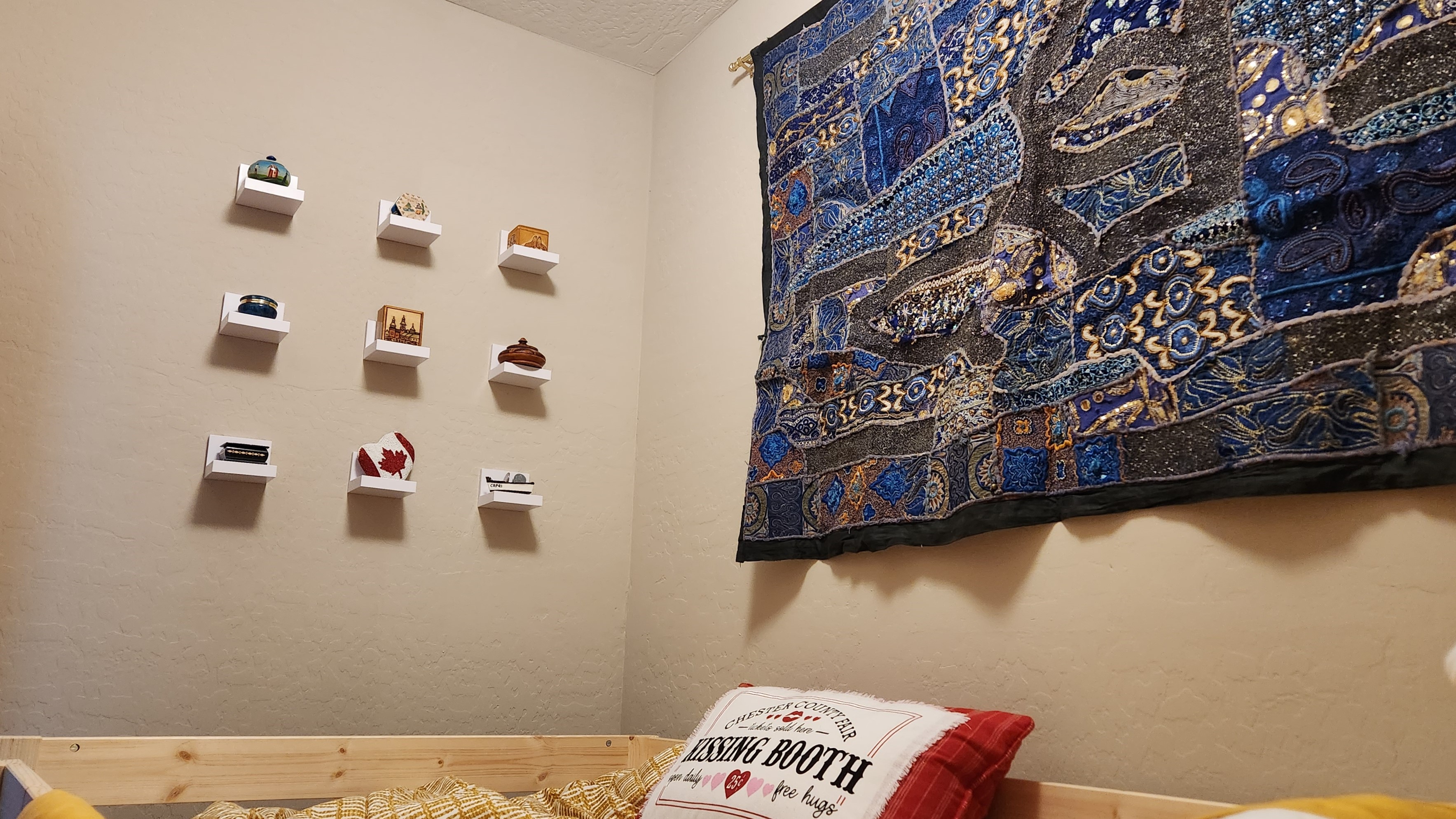Two days later, the whole space is back together. We now have sleeping accommodations for four … complete with artwork on the walls and mood lighting. The kids arrive in two weeks and have no idea that they won’t  be sleeping on the floor at Grandma’s anymore!
