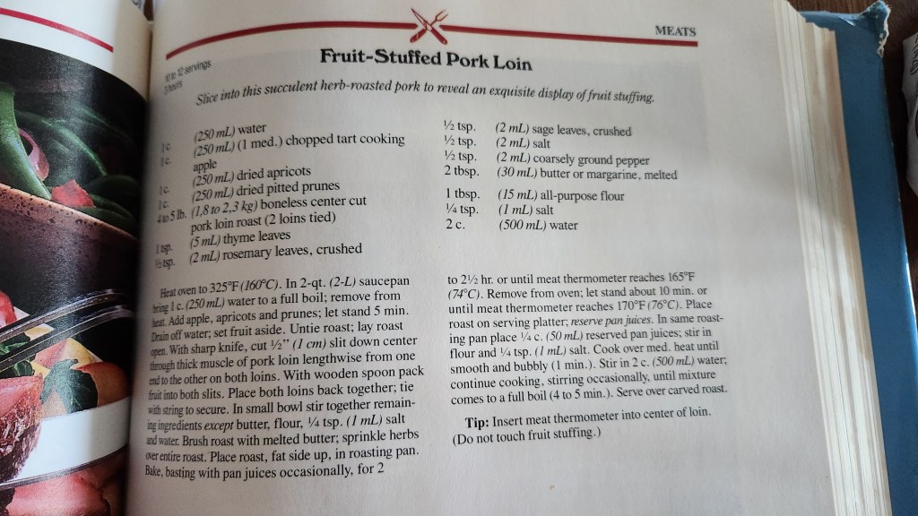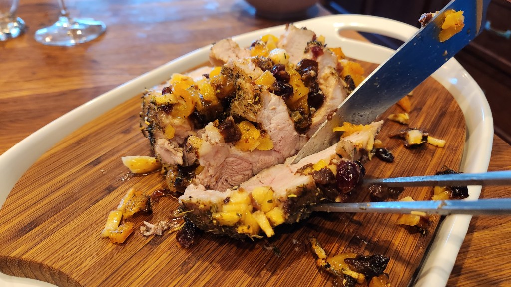 As a fruit lover, when I ran across a recipe for “Fruit-stuffed Pork Loin” I was intrigued. Apples, dried apricots and prunes highlight the ingredient list of this main course. I decided to give it a try.