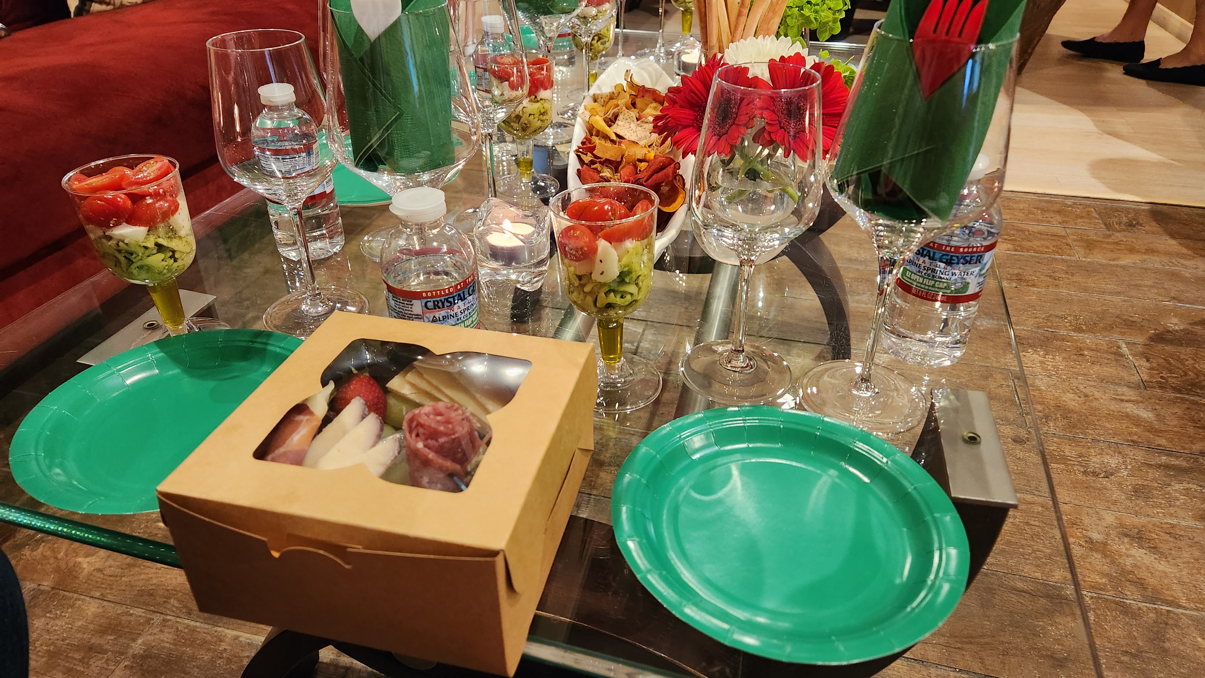 We arrived early and chatted with others already eyeing the display of wines we would be trying. The white was chilling; the reds were breathing; the perfectly chosen noshes were laid out for tasting.