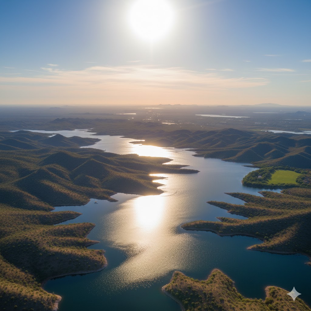 As we climb to our cruising altitude, l glance out the window and notice the rising late summer sun glistening off a river below. A few seconds later the river empties into a big lake that beckons boaters to enjoy a day on the water. Over in a distant corner of the patch of water, a swath of green hugs the shore — a rare sight in the desert north of the Valley of the Sun.