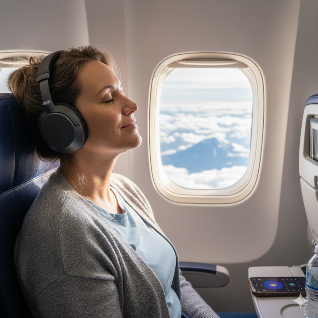 The flight attendants come by one last time to offer a beverage. I greedily gulp down a full cup of water, thirsty in the dehydrating air of the cabin.