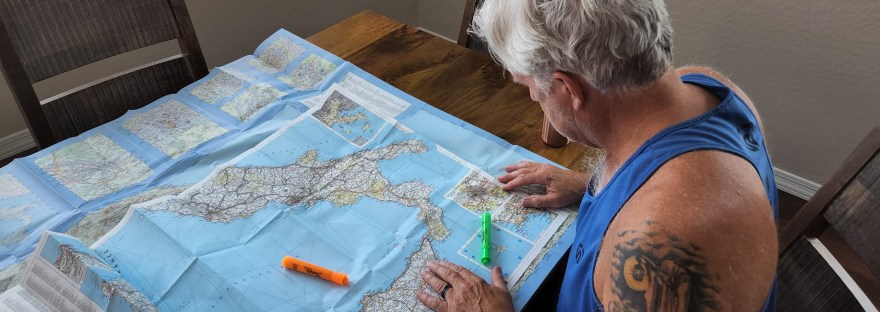 As we got close to leaving on the trip, we spread both maps out on the dining room table and made sure we knew our route.