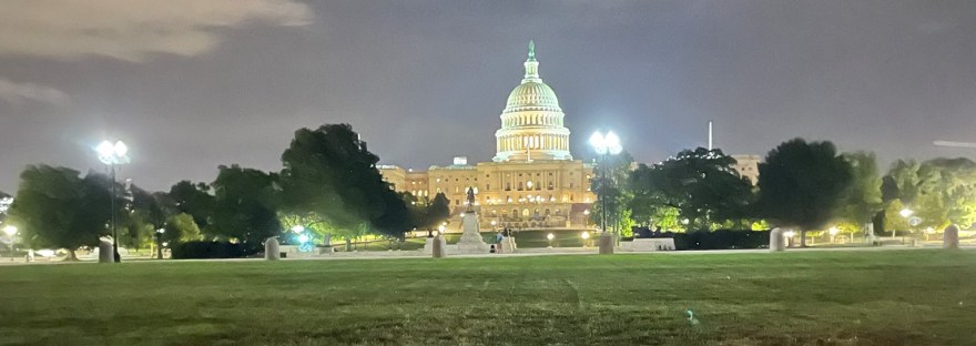 I decided the best plan would be to hit up a favorite restaurant fairly close to the airport then head into the city for a nighttime drive of the monuments illuminated after dark.